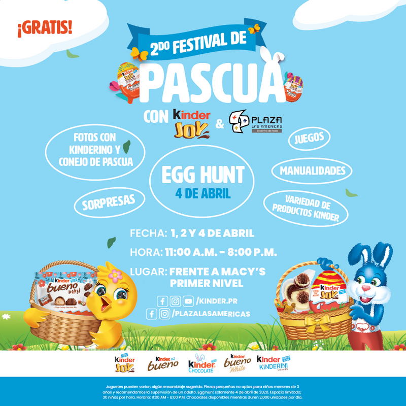 Enjoy a free event for the whole family, full of fun, photos with Kinderino and the Easter Bunnies, and a variety of Kinder chocolates.